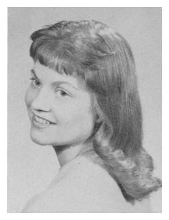 Classmate: Judy (Wilson) Black Residence: Pacifica, California Spouse: Tom Black ('58) (38 years) Children: 3 daughters (Ages 46, 44, 41) Grandchildren: 4 (2 grandsons 23, 19; boy and girl twins age 13) Organizations: Serve on my condo association board. Something out of the ordinary: I lived in Wales and England for three years. Most inspiring teacher: Miss Fitting. She taught me to write and the proper use of grammar. I never could have written the curriculum for my school without those tools. Thanks goodness I didn't have to use light green paper. High school memory: Marching from the old high school down Stadium Drive to the home football games and the sock hops after the games. |