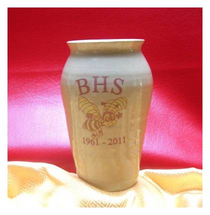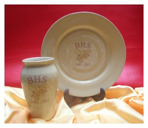 One of our thoughtful classmates, Susan (Schmid) Loughry, has commissioned a local artist, Sarah Costic, to make a special commemorative plate and vase specially for our class reunion. These are hand made items and fired in Sarah's studio in Richfield. Pictures of the items are shown below (scroll down to view).
